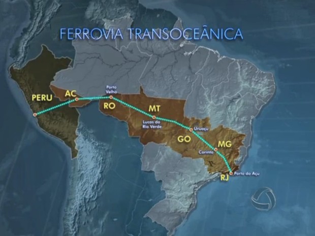 Ferrovia Transoceânica ligará os oceanos Atlântico e Pacífico.